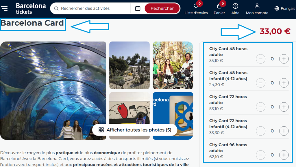- Accède au site officiel de la Barcelona Card en cliquant sur ce lien.