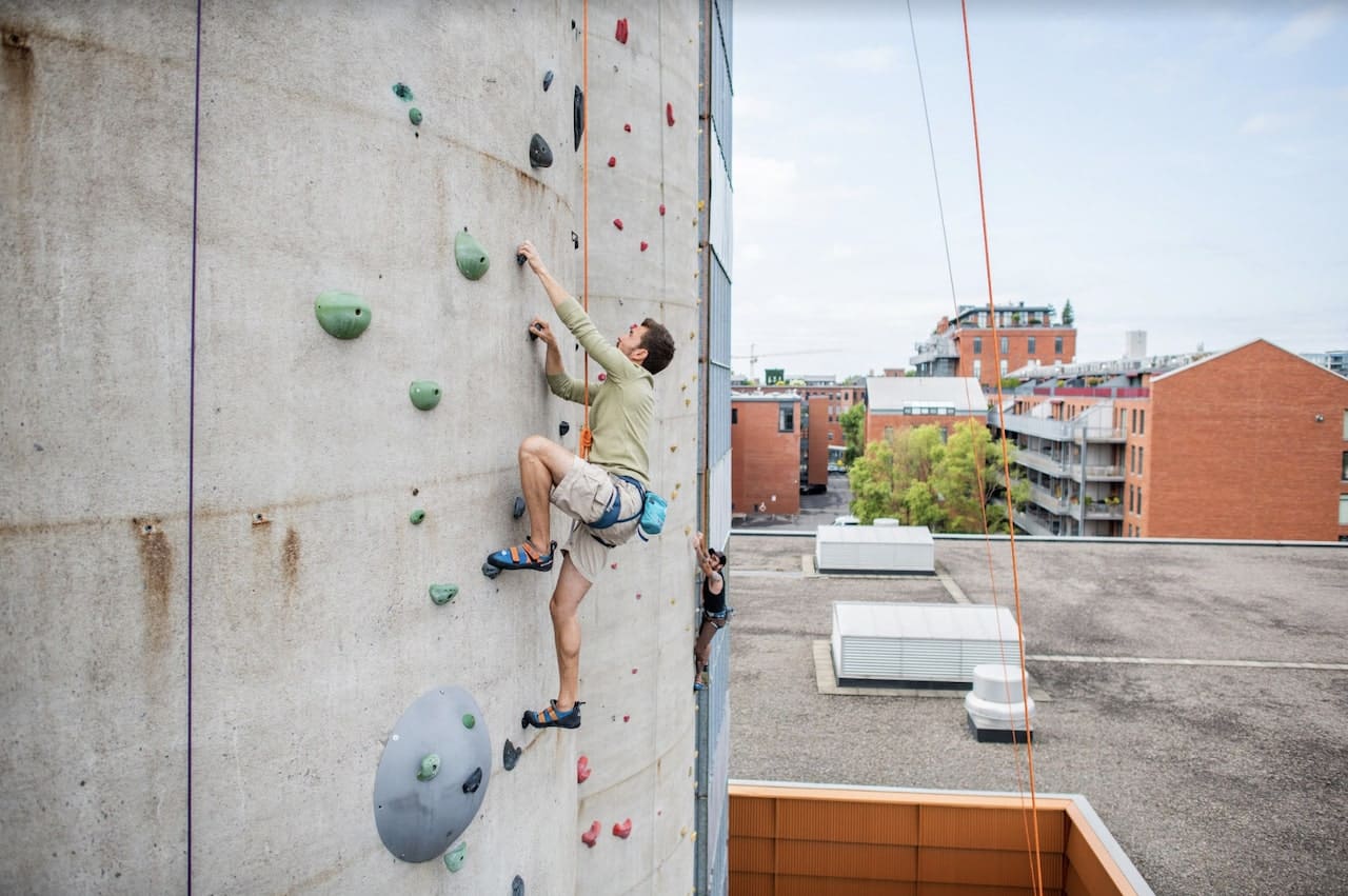 Ce club d’escalade Allez-up est très stylé. Ils ont récupéré des anciens silos à céréales reconvertis en parois d’escalade.