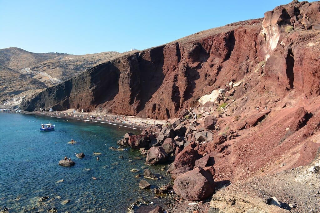 - Red Beach : l’un des spots les plus célèbres de Santorin, qui doit son nom à ses somptueuses falaises d’un rouge profond. Si la foule ne te dérange pas, sache que le snorkeling y est vraiment top.