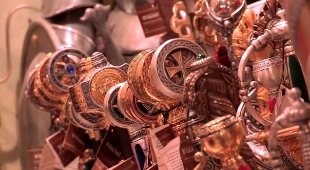 Si tu es amateur de couteaux ou même d’armes blanches, Tolède était réputée à l’époque pour le savoir faire de ses artisans dans ce domaine. Du coup, les boutiques souvenirs ne se privent pas de le rappeler et il y a d’ailleurs plusieurs magasins spécialisés sur ce créneau. Ne m’y connaissant pas du tout là-dedans, je ne serai pas dire si la qualité est au rendez-vous ou si ces objets tranchants sont uniquement bons pour la décoration.