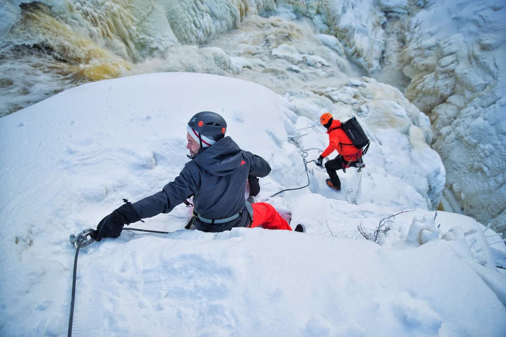 Puis route vers le Canyon Saint-Anne, à 30 minutes environs de Québec, pour y faire une Via Ferrata hivernale au bord de cascades spectaculaires de glace, avec le Projet Vertical.
